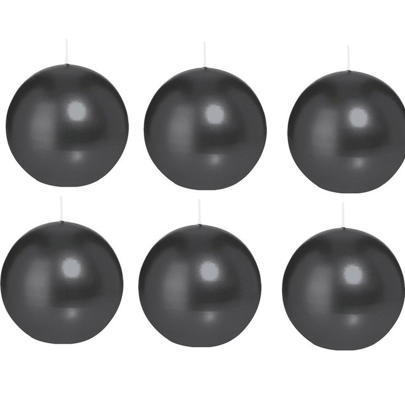 6x Zwarte bolkaarsen 8 cm 25 branduren. Ronde bolkaarsen/balkaarsen zonder geur met gladde afwerking in de kleur zwart. U kunt meerdere kaarsen gebruiken als sfeermakers, bijvoorbeeld tezamen gepresenteerd op een kaarsenplateau.