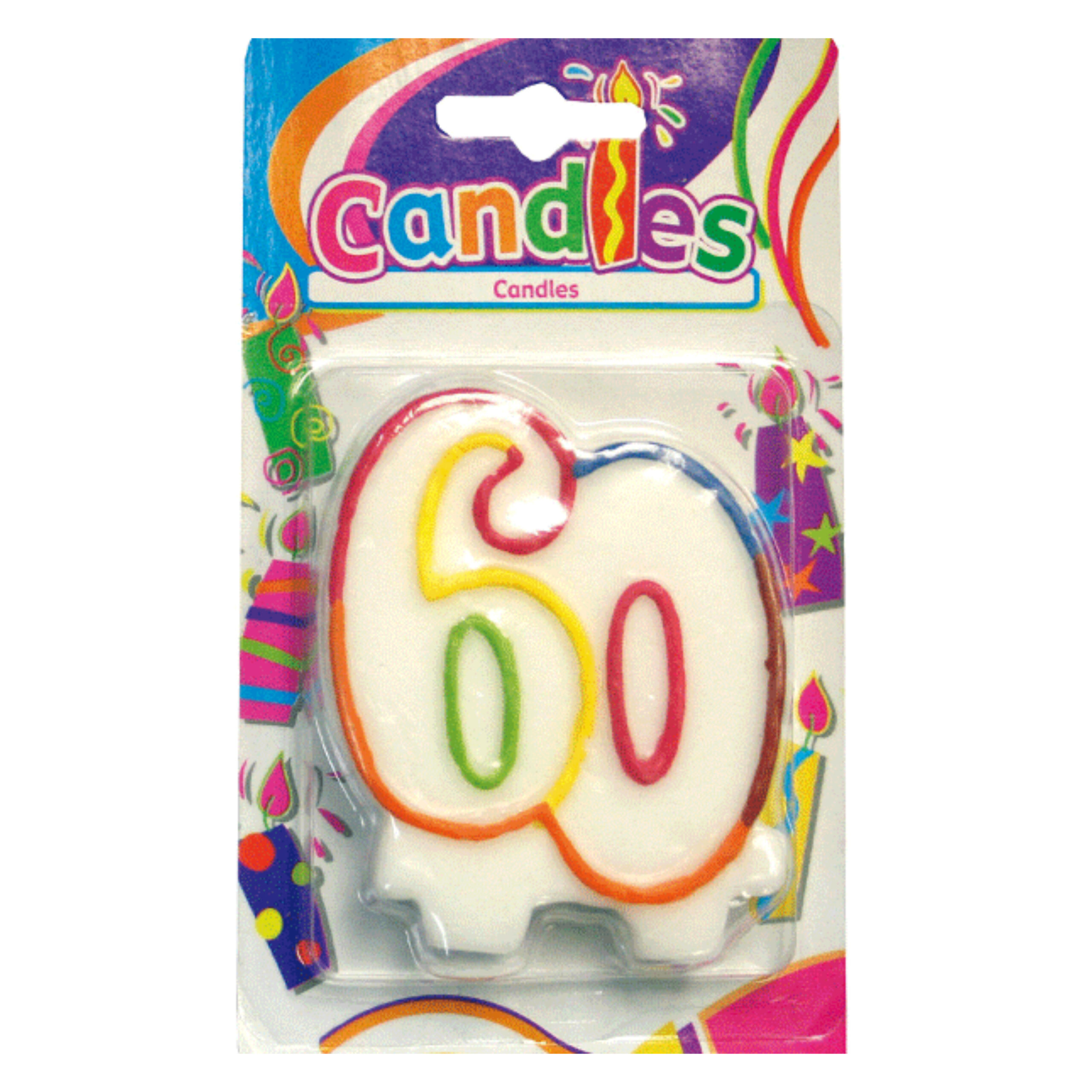 Cijferkaars 60 jaar. Een kleurige kaars in de vorm van het getal 60. Leuk voor uw verjaardag of jubileum.