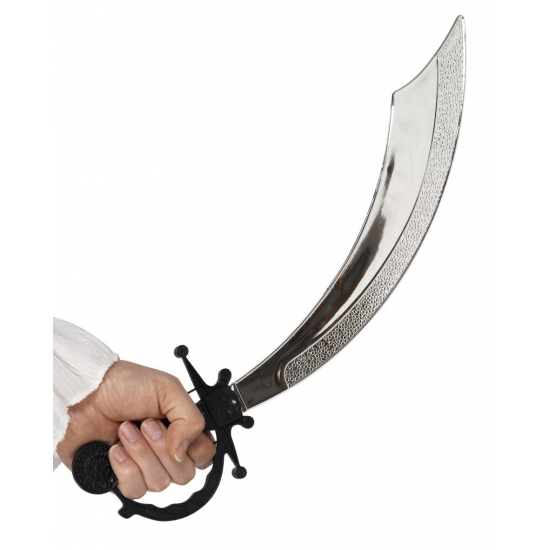 Piraten zwaard met zwart handvat van ongeveer 40 cm. Kinder speelgoed zwaardjes voor o.a. piraten.