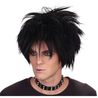 Rockers pruik met zwart haar. Deze wilde pruik heeft zwart piekhaar. O.a. stoer bij een rockers kostuum. Let op: dit is een verkleedaccessoire voor volwassenen, geen speelgoed.