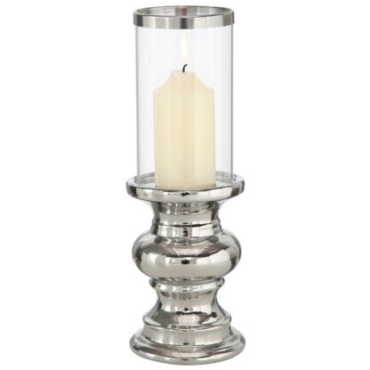 Deco by Boltze Kaarshouder, 28 cm. Zilverkleurige kaarsenhouder/windlicht voor stompkaarsen 28 x 10 cm met glazen top. Trendy design stijl. Zilver/transparant. Materiaal: keramiek.